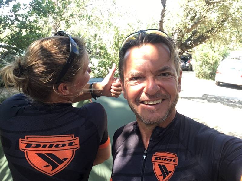 At the campsite we put our tent up again and work on the film. The WiFi is unfortunately lousy. The minimarket of the campsite is open but has such a defective assortment that it is impossible to cook a meal. We therefore cycle back to Thea's bar. A carafe of wine, tzatziki, kebab, Greek salad and the milestone party is complete. But also here is the WiFi insufficient to put the video on Facebook.