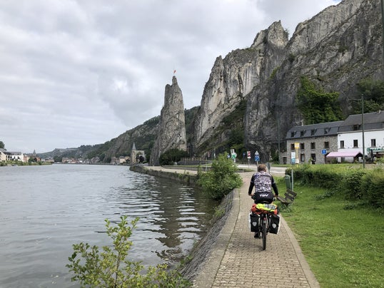 The Meuse route between Givet and Dinant is beautiful and between Dinant and Namur quite nice. There are some diversions due to the recent high water. In Namur we decide to continue following the Meuse route to the dutch city Maastricht. That's the fastest route and the weather forecast looks lousy. No campsites does not matter anymore. We'll take a hotel.