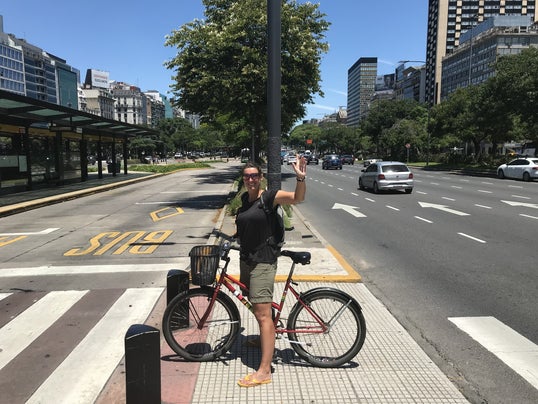 - They drive here on the right side of the road! That's weird, the last time we saw that was in Cambodia, about nine months ago. Harry is visibly having trouble with it, because in Buenos Aires he takes a seat behind the wheel of the taxi, wondering why those pedals are on the passenger side. The taxi driver is laughing out loud.
