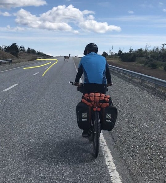 The first stage takes us to the next town: Tolhuin at more than 100 kilometers on Isla grande de Tierra del Fuego, or the main island of Fireland. A Portuguese explorer called it so because at the beginning of the 15th century he saw from his ship fires burning off the original inhabitants. Since the end of the 19th century, the archipel has been divided between Argentina and Chile. There are actually only three (real) towns on the Argentinian part of the main island, next to Ushuaia and Tolhuin you have Rio Grande. On the Chilean part you only have Porvenir, so in total only four towns in an area larger than the Netherlands. But we estimate that life can be quite tough here: cold, long winters and short wet summers and (almost) always that strong wind to storm from the west. We are not bothered by this in the direction of Tolhuin: the temperature is quite pleasant and Tolhuin is located northeast of Ushuaia, so the (today calm) westerly wind blows us in the right direction. The stage is quite nice, the mountains around us are not very high, but rough and beautiful with the remaining snow from last winter and the fresh snow from the last days. Every now and then we have to climb a bit, but we cycle to the top of the first pass, the Passo Garibaldi. Along the way we meet six cyclists, half cycles in the same direction. With only one we can talk for a while, on the one hand because he is parked at the pass and jovially approaches us, on the other hand because he speaks English well.