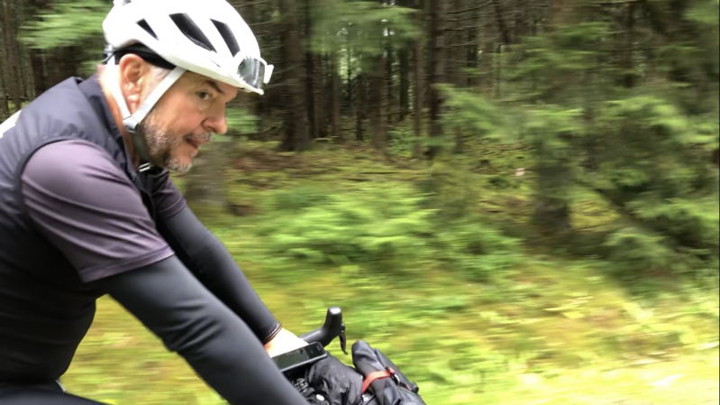 After an almost complete gravel day yesterday, today we cycle relatively a lot on asphalt roads. We suspect that the route maker has included a technical MTB course in the route to compensate for this. But except for a climb, everything can be cycled. We have completed our first piece of 'hike-the-bike'. Roelie helped Harry to lift and push his bicycle over the rocks and tree roots. When it's the turn for Roelie's bike, Harry starts taking pictures. It's a matter of setting priorities, he explains.
